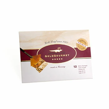 The Gold Leaf specialist since 1867. These Gold leaf pack contains 12 genuine edible 23k gold leaves 50 x 50mm (2 x 2). They come as replacement for the leaves included with the Gold Gourmet set SKU#122055.